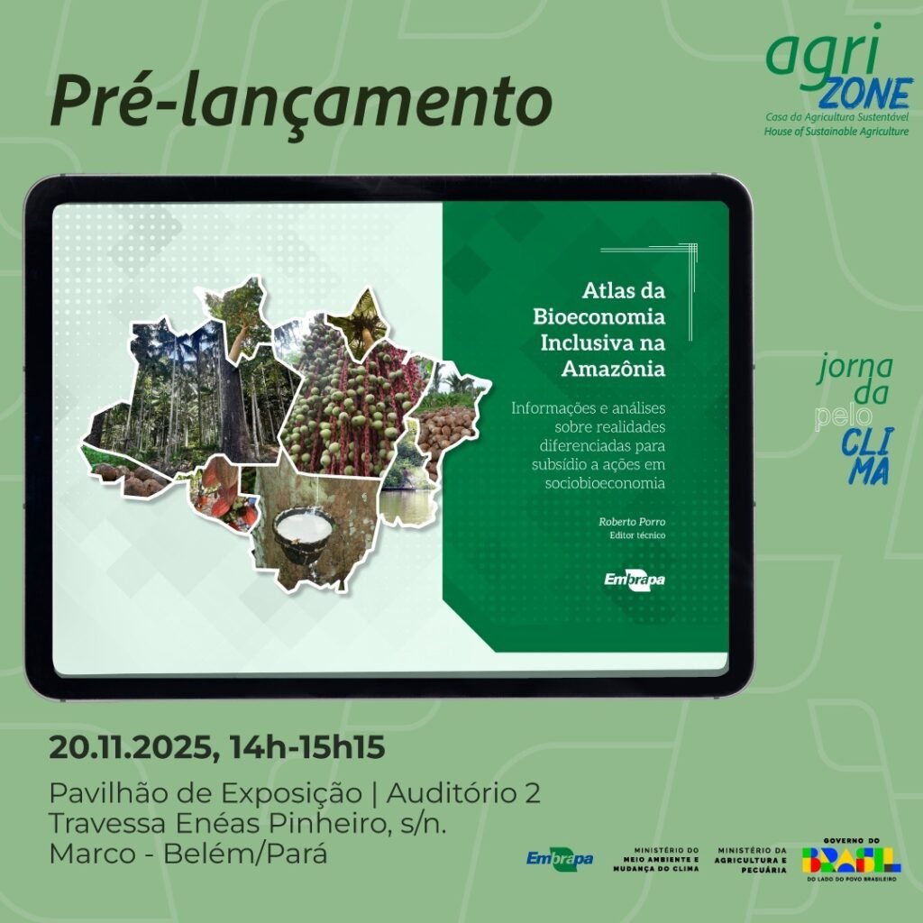 Texto de divulgação: Dia 20/11, em Belém: pré-lançamento do Atlas da Bioeconomia Inclusiva na Amazônia — dados e propostas para impulsionar iniciativas sustentáveis e inclusivas na região. #Bioeconomia #Amazônia #Embrapa